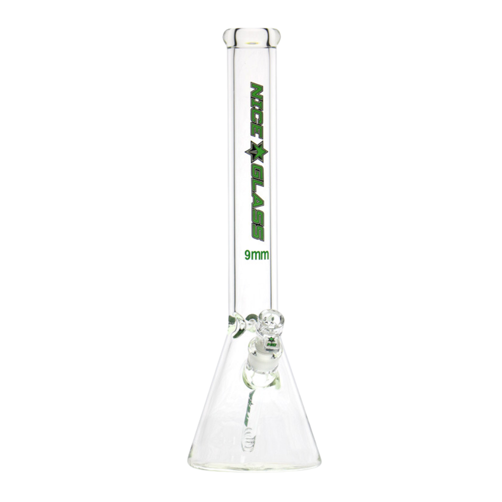 Experience exceptional durability and performance with the Nice Glass 18" Beaker Bong. Crafted from high-quality borosilicate glass, this substantial piece features a thick, 9mm construction that ensures longevity and resistance to breakage.