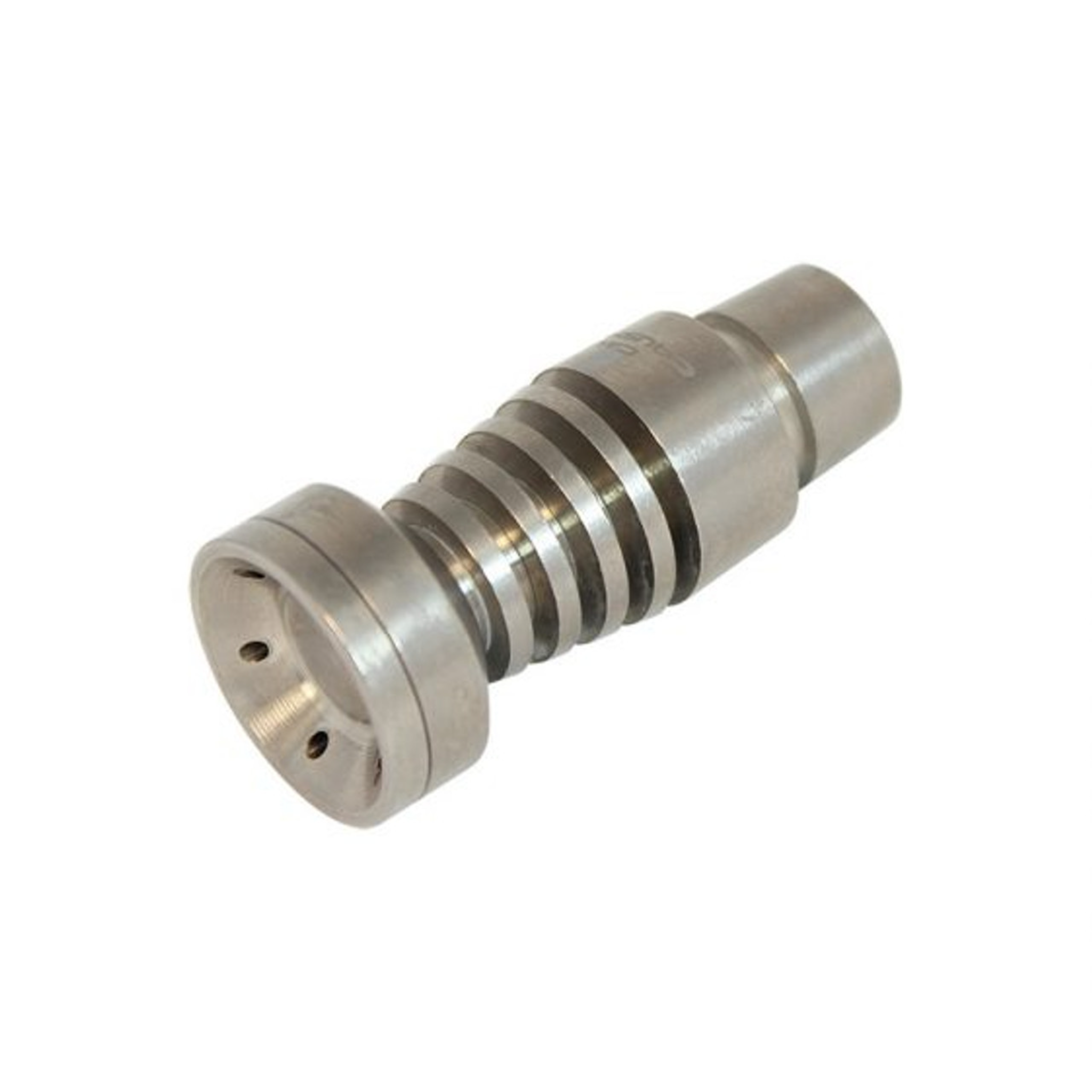 Cali Crusher Domless Titanium Nails have an adjustable nail head for max air flow that is easy to remove for cleaning. Great for enthusiasts that don't want to bother with domes or globes. Measures approx 2" and fits a 14mm, 18mm or 19mm stem.