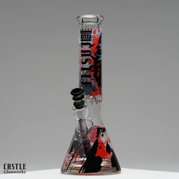 Equipped with a colored glass bowl and a downstem, it delivers convenience and performance without compromising on its appeal. The raven imagery evokes the untamed spirit of nature, making it ideal for those who enjoy a smoking experience that connects them to the outdoors. Whether you're a collector or a regular user, the Castle Glassworks Raven Beaker Bong offers a perfect balance of craftsmanship, design, and functionality, making it a standout addition to any glass collection.
