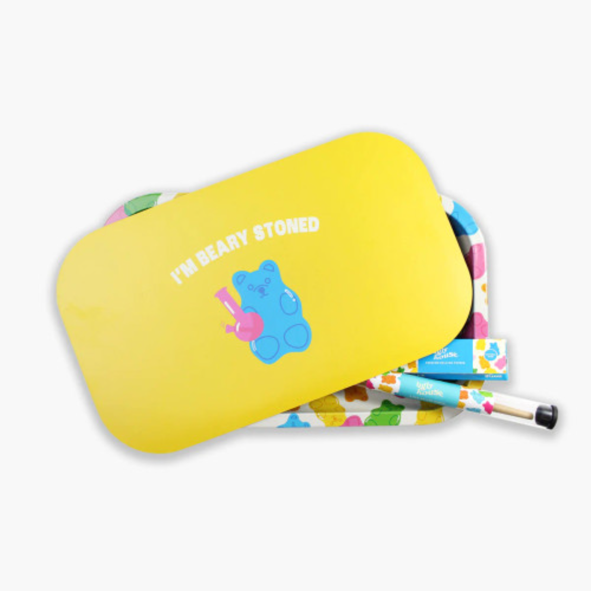 Rolling Trays by Ugly House measure 10.6" x 6.3" and feature cheering colorful design that comes with a strong magnetic lid that helps keep everything fresh, organized, and clean. The bundle comes with three unbleached hemp pre-rolled cones and a pack of unbleached 1¼" hemp rolling papers. The magnetic lid cover only covers the top of the tray.