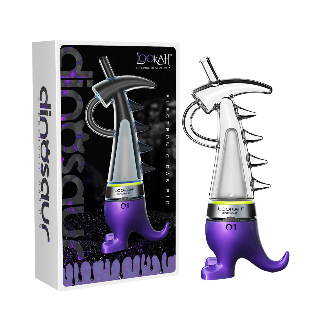The Dinosaur E-Rig combines eye-catching design with powerful performance. Its spiked dinosaur-inspired shape houses a 950mAh battery, a large glass water bubbler, and a fast-heating 710 quartz bucket coil that produces smooth, flavorful vapor. With haptic feedback, an LED display, magnetic parts, and compatibility with other Lookah bubblers and coils, it’s a customizable, travel-friendly device that makes dabbing easy, fun, and efficient.