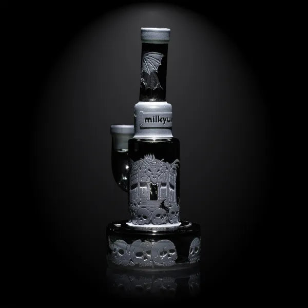 We crafted this rig using our advanced technique known as ‘Micro-SB,’ showcasing the pinnacle of our skill and resulting in one of our most intricate and meticulously designed pieces. Taking inspiration from games of games and tyrant kings, this 7” rig perpetuates the ongoing card game between King Horan and Death.