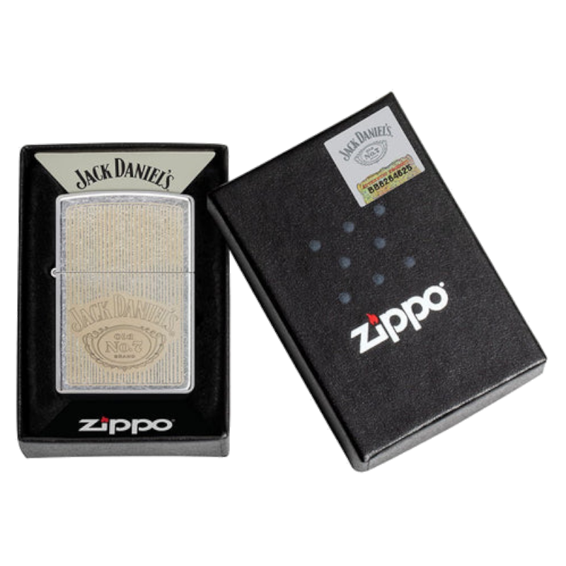 Your favorite Tennessee whiskey is given the star treatment on this Street Chrome™ lighter. The Jack Daniel's® logo and surface pinstripes are achieved with both our Auto and Laser Engraved processes for a luxurious, timeless effect.Comes packaged in a gift box. For optimal performance, fill with Zippo lighter fuel.